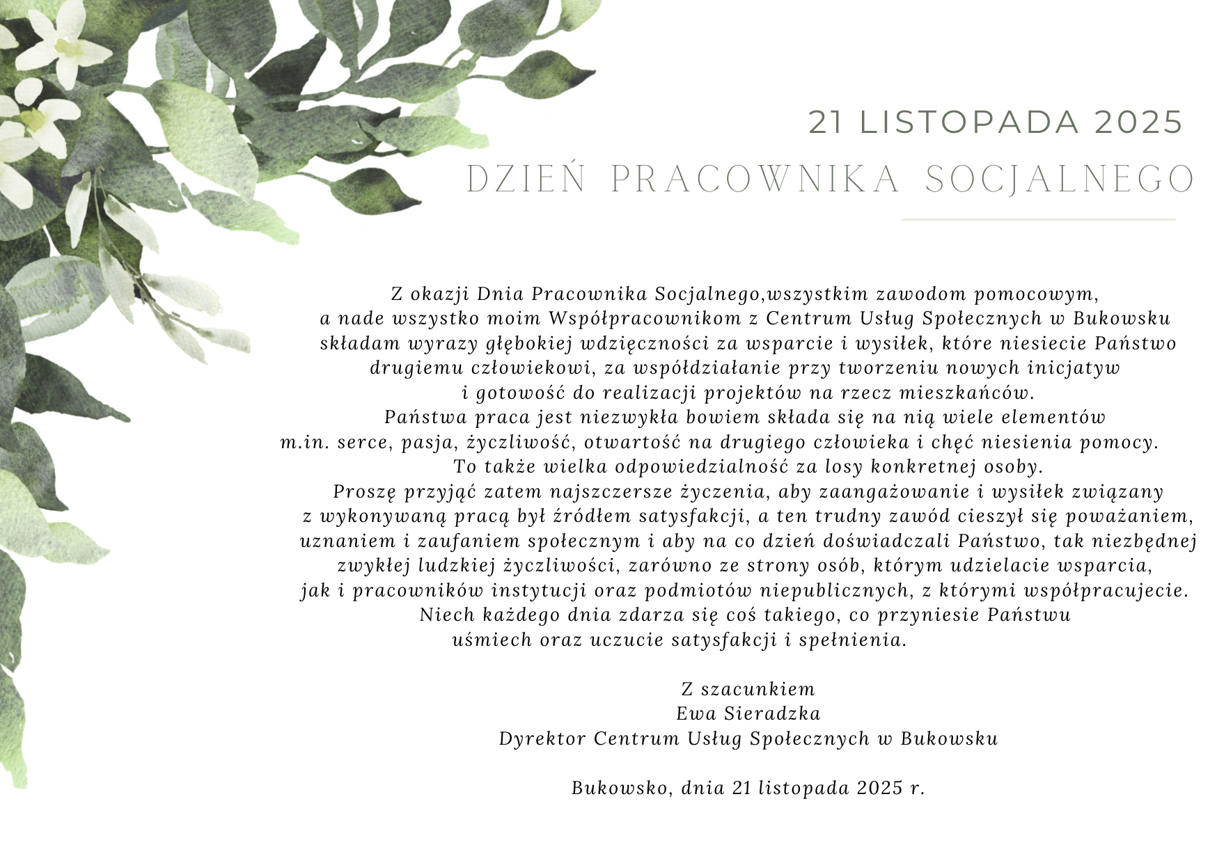 © 2026 Centrum Usług Społecznych w Bukowsku | Życzenia z okazji Dnia Pracownika Socjalnego